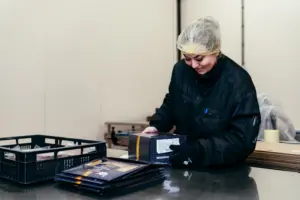 - Handmatig lossen van containers (product op de lopende band plaatsen)
